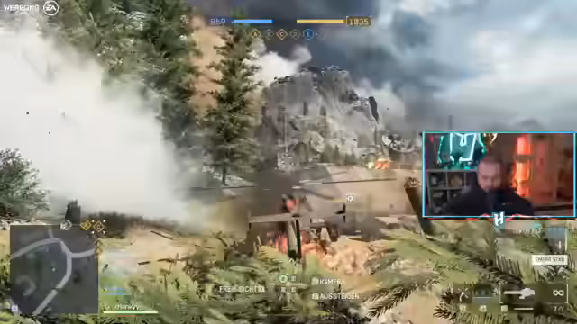 03:59:49Der Stream konzentriert sich auf ein intensives Gefecht auf der neuen Karte. Der Fokus liegt auf der Eroberung und Verteidigung von strategischen Punkten, insbesondere um Punkt Lillbert. Ein zentrales Element ist der Einsatz des Little Birds, einem neuen Helikopter, der für Luftunterstützung und Infanterie-Bekämpfung genutzt wird. Die Kämpfe sind geprägt von hohen Verlusten, weshalb häufige Taktikwechsel und Neuanläufe erforderlich sind. Besonders herausgefordert wird die Gruppe durch gegnerische Spieler, die sich in Geschützstellungen verschanzen und Helikopter aus der Luft angreifen.