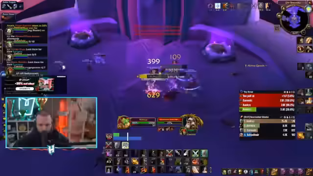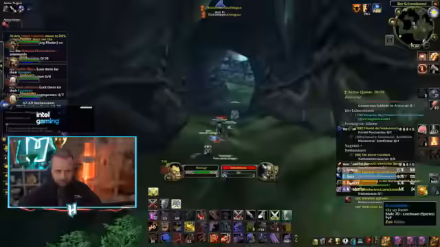 05:33:59Der WoW-Teil konzentriert sich auf den Dungeon „Slave Pens“. Die Gruppe hat das Ziel, den ersten Boss schnell zu überspringen (Skip), was eine präzise Koordination erfordert. Es kommt zu technischen Problemen, da ein Spieler nicht an der Daily-Quest teilnehmen kann. Trotzdem meistert die Gruppe den ersten Boss auf Anhieb. Danach werden sie von feindlichen Spielern im PvP-Bereich angegriffen, was zu einem unvorhergesehenen Kampf führt und den geplanten Ablauf unterbricht.