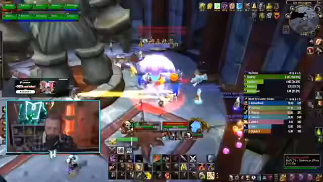 06:12:39Bevor der Endboss angegriffen wird, gibt der Streamer eine detaillierte Erklärung der Bossmechaniken. Der Boss hat drei Phasen: In Phase 1 muss er an einer Wand im Maximal-Range positioniert werden, um einer tödlichen Schattennova zu entgehen. In Phase 2 erscheinen Waffen, die random Spieler angreifen, und der Tank erlitt sehr hohen Schaden, der intensiv geheilt werden muss. In Phase 3 regnet es Inferno-Behemoth vom Himmel, die mit AOE-Schaden für Chaos sorgen. Ein wichtiger Aspekt ist das Entfernen eines bestimmten Debuffs, 'Shadow World Pain', um die Gruppe am Leben zu halten.