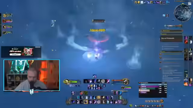 09:49:20Während des Kampfes gegen den Kurator gibt es Anpassungen an der Taktik. Der Streamer erkennt an, dass ein Spieler Frost-Verzauberung hat und nutzt dies aus. Er betont, dass der 'Set Bonus' eine Unterbrechung verhindert. Der Kampf wird als 'beschissen' beschrieben, aber es wird gearbeitet, den 'Kurator' 'abzugehen'. Es wird über das Loot gesprochen und ein Spieler lobt den获得的' Stab.