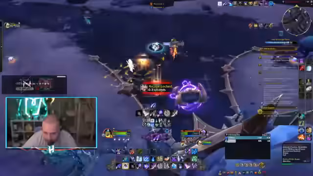 10:22:55Der Kampf gegen Aran beginnt. Der Streamer ruft 'Nicht bewegen, nicht bewegen'. Er erklärt, dass die 'Blizzard' im Uhrzeigersinn läuft. Wenn die 'Elementare' erscheinen, müssen drei getötet und eines 'banish't' werden. Ein Spieler muss in die Mitte für 'Ehles'. Der Streamer gibt klare Anweisungen zur Bewegung und Interrupts während des Kampfes.