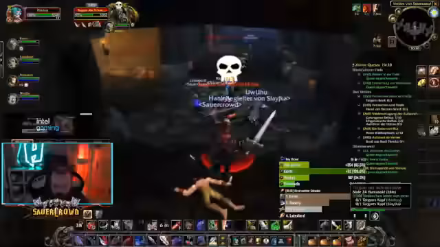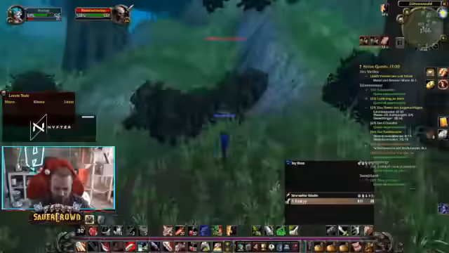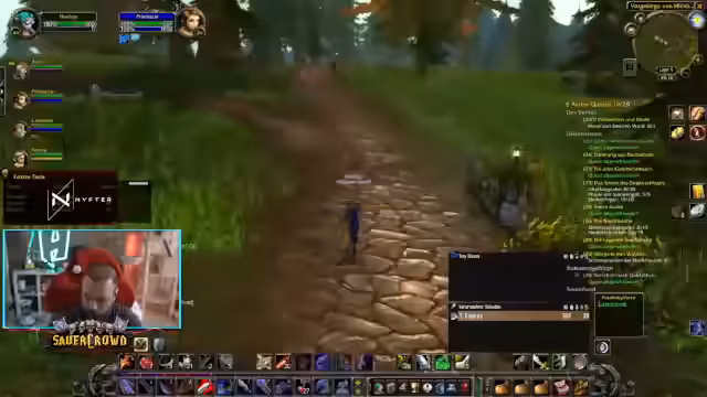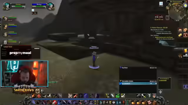 11:01:00Der Streamer ist Teil einer Gruppe, die im Zuge der Level-24-Krieger-Vorbereitung gemeinsam Dungeons wie Krallenhort (Ragefire Chasm) angehen. Es werden strategische Ansätze für Mob-Pulls besprochen, insbesondere die Nutzung von AoE-Fähigkeiten und die bei Classic WoW ungewöhnliche Aggro-Logik. Es herrscht eine lockere, oft riskante Stimmung, bei der oft mehrere Versuche unternommen werden, um bis zu bestimmten Bossen zu gelangen, wobei auf gegenseitige Unterstützung geachtet wird.