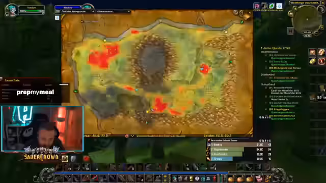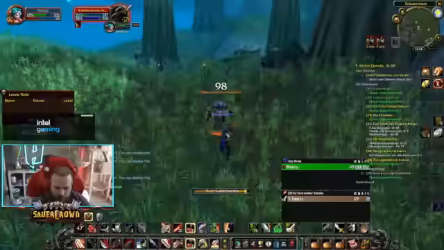 09:40:54Der Streamer berichtet von Kooperationen innerhalb seiner Gilde und gruppiert sich mit anderen Spielern, um gemeinsam Dungeons wie die 'Blackfathom Deeps' (BFD) zu bestreiten. Er beschreibt eine knappe und actionreiche Begegnung mit einem Endboss, bei der die Gruppe knapp dem Wipe entging. Ein wichtiges Ereignis war das versehentliche Aktivieren von PvP im Zusammenhang mit der Quest 'Light of the Elune', was zu einem ungewollten PvP-Zustand führte und eine Herausforderung darstellte. Ein Schurke in der Gilde tauschte versehentlich eine wertvolle Waffe, was zu einem kuriosen und amüsierenden Moment im Chat führte.