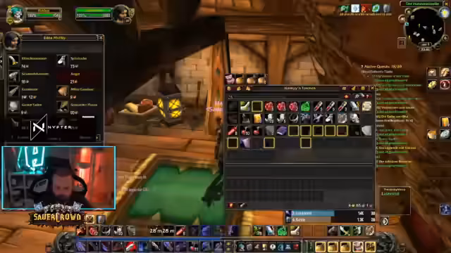 10:11:38Ein wiederkehrendes Thema ist das volle Inventar des Streamers, das das Gameplay und das Farmen von Ressourcen einschränkt. Er sammelt Materialien für Berufe wie Kochen und Ingenieurswesen, was den Platz im Rucks schnell beansprucht. Er spricht über die Notwendigkeit, Gold zu generieren, indem man mit World-Buffs gegen Mobs kämpft und die Drops verkauft, oder dass die Gilde intern Handel ermöglicht. Der Mangel an freiem Platz führt zu strategischen Entscheidungen, bei denen er unnötige Gegenstände löschen oder Platz schaffen muss, um weiterzuspielen.