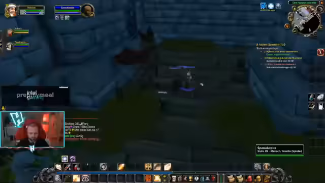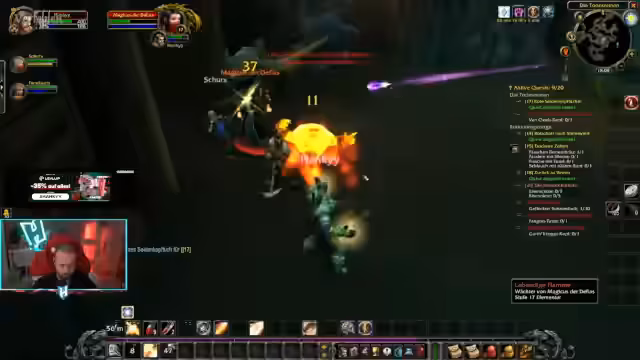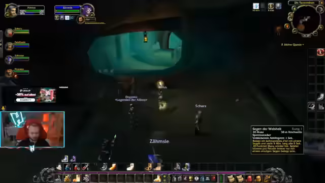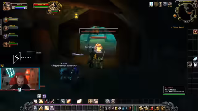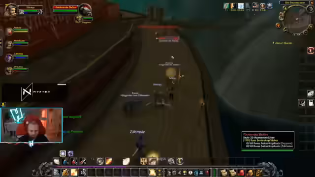 04:07:02Das Team tritt einer Gruppe bei, um gemeinsam die Todesmine (Deadmines) zu betreten. Sie planen, Elite-Mobs zu bekämpfen und Questgegenstände wie rote Kopftücher zu sammeln. Ein Mitglied weist auf die Herausforderungen des Dungeons hin, insbesondere auf die hohen Respawn-Zeiten und die Gefahr durch Elite-Gegner. Während sie auf einen wichtigen Mob warten, den sie für eine Quest töten müssen, diskutieren sie ihre Erfahrungen mit Ausbildungen und Berufsschulen. Ein Streamer teilt persönliche Geschichten über schlechte Ausbildungsbedingungen und die Wichtigkeit praktischer Erfahrung. Die Gruppe bleibt wachsam, um nicht von nachspawnenden Eliten überrascht zu werden, während sie durch den Dungeon navigiert.