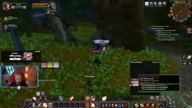 00:35:02Der Streamer startet mit dem Nachtelf-Krieger und bewältigt erste Quests. Dabei stehen Ressourcenmanagement im Fokus: Inventar leer verkaufen, Handwerk (Erste Hilfe, Wolle sammeln) und Waffenskill-Training. Interaktionen mit anderen Spielern zeigen die Notwendigkeit von Koordination – etwa bei Quests wie der Hopfenernte. Humoristische Elemente wie Diskussionen über Alkohol (Wodka) und persönliche Anekdoten (z. B. Kopfhörer-Probleme) werden eingewoben, ohne den Fokus auf Kernthemen zu verlieren. Das Ziel bleibt, durch Leveling Fortschritte zu erzielen und für das Hardcore-Event gerüstet zu sein.