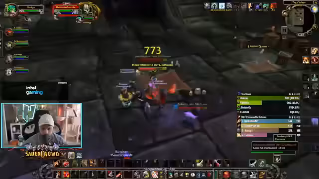 03:00:25Der Kampf gegen den Boss beginnt mit der Strategie, den Mystiker zu fokussieren und die Adds zu kontrollieren. Es kommt zu einem kleinen Missverständnis bei der Nutzung von Blind und Sheep. Der Streamer versucht, den Boss zu kontrollieren, während der Rest der Gruppe die Adds in Schach hält. Nach dem erfolgreichen Kampf werden die Drops besprochen und der Sieg gefeiert.