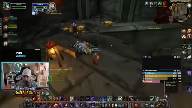 02:18:34Die Gruppe startet schließlich den Dungeonzug. Es finden sich strategische Besprechungen, wie die Mobs gruppiert und getötet werden. Nachdem die Gruppe vor einem sehr starken Gegner nur knapp mit dem Leben davongekommen ist, wird eine Kameraleiche im Dungeon erwähnt und die Notwendigkeit einer koordinierten Heilung betont.