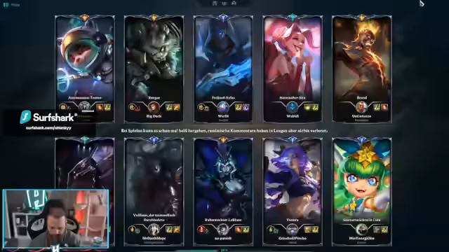00:03:36Der Streamer begrüßt die Zuschauer und kündigt an, heute League of Legends zu spielen, da er großen "Bock auf League of Legends" hat. Er erwähnt, dass er nur bis 15 Uhr streamen kann, da er mit seiner Katze Yuna zum Tierarzt muss. Er plant, nach dem Termin wieder Battlefield zu spielen, sobald das angekündigte Update verfügbar ist. Die erste Partie beginnt auf der Midlane, wobei er sich über die aktuelle Situation von Battlefield wundert, da die Zuschauerzahlen sehr niedrig sind. Er stellt fest, dass sein gewählter Champion Mel gebannt wurde und überlegt, welcher Champion gut gegen einen Set in der Mitte ist, wobei er befürchtet, sich selbst "counterpickt" zu haben.