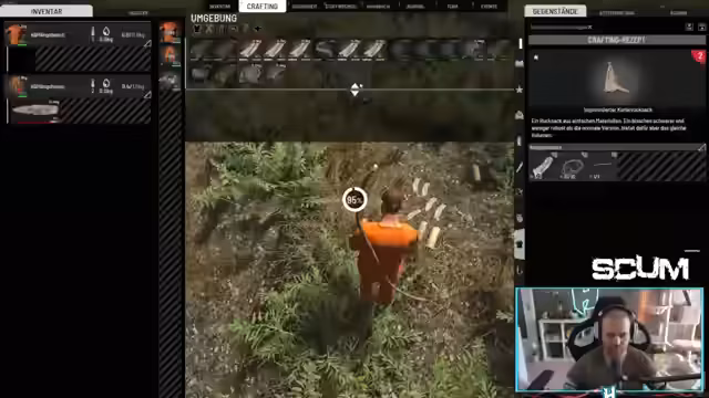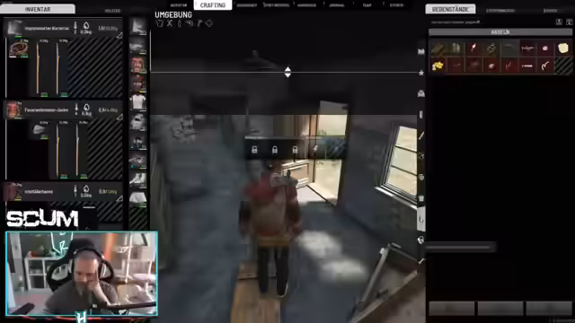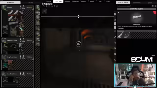 05:31:25Der Streamer vertieft sich in das Crafting-System von SCUM und stellt nützliche Gegenstände wie Werkzeugkisten, Waffen und Ausrüstung her. Er zeigt den Prozess der Herstellung verschiediner Gegenstände und diskutiert über die Wichtigkeit von Ressourcenmanagement im Spiel. Gleichzeitig muss er mit den Gefahren der Spielwelt umgehen, wie Zombies und andere Spieler, während er versucht, einen stabilen Lebensunterhalt aufzubauen und seine Überlebenschancen zu erhöhen.