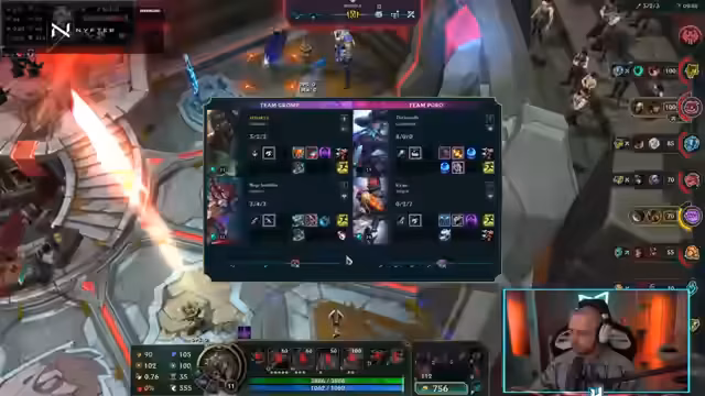03:44:47Das Streamer-Team tritt in der League of Legends-Arena an. Der Streamer zeigt sich zunächst unsicher über seine Champion-Wahl, entscheidet sich dann aber für Soraka als Support. Die Runde ist geprägt von strategischen Fehlern und unerwarteten Spielzügen des Gegners, wie einem gegnerischen Silas und einem voll auf kritische Treffer gesetzten Bild. Trotzdem versucht das Team, das Spiel zu kontrollieren, insbesondere mit dem Fokus auf starke Heils und Schild-Mechaniken.