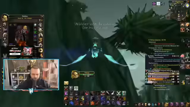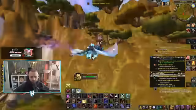 05:43:35Die Aktivitäten verlagern sich in die Open World World of Warcraft, wo ein unvorhergesehenes Duell mit einem Hunter ausbricht. Der Streamer ist auf PvP-Gear umgeschaltet und stellt fest, dass seine Einheiten-Frames sich dadurch verändert haben. Er beschreibt das feeling von 260% Fluggeschwindigkeit mit dem Netherdrachen als verrückt und erinnert sich an seine Aktivitäten während The Burning Crusade. Nach dem Duell werden wieder Quests und Verzauberungen als nächstes Ziel ins Auge gefasst.
