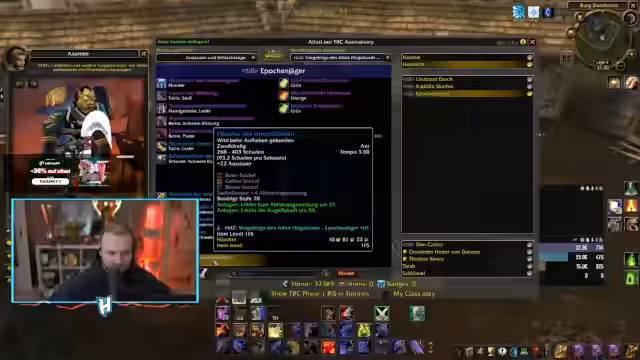 09:42:32Der Stream beinhaltet viel Gameplay in World of Warcraft: The Burning Crusade. Der Sprecher beschäftigt sich intensiv mit der Vorbereitung für einen Raid in Karazhan und die Farmung von Ruhm in Dungeons, insbesondere für benötigte Ausrüstung wie ein Trinket. Dabei treten technische Probleme auf, wie ständige Tode durch Stuns und 'Gefriert'-Effekte, die den Spielfluss stark beeinträchtigen. Er äußert Frust über die Performance seines Kriegers als Tank, der in größeren Gruppen mit Castern Schwierigkeiten hat, die Aggro zu halten, und führt das auf den Mangel an AoE-Fähigkeiten und die hohe Rausch-Produktion zurück.