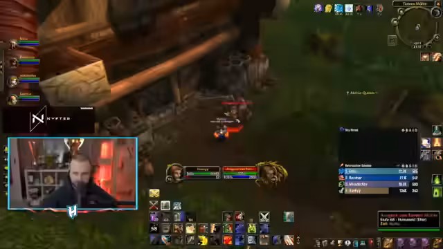 04:09:25Technische Probleme mit der Benutzeroberfläche (UI) dominieren den Abschnitt. Das Dragonflight-UI Add-on verursacht Konflikte mit Bartender und andere Anzeigefehler, wie eine störende XP-Bar. Trotz der Schwierigkeiten wird auch ein unvorhergesehener PvP-Zwischenfall erwähnt, bei dem der Streamer von einem anderen Spieler angegriffen und anschließend von einem Priester gerettet wird, was zu einer spontanen PvP-Situation führt.