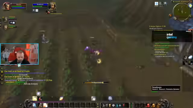 05:54:55Der Streamer questet gemeinsam mit anderen Spielern in Westfall, bekämpft Defias-Banditen und sammelt Quest-Items wie Lebern und Gnolle. Es entstehen Diskussionen über Loot-Verteilung, da einige Gegenstände nicht getradet werden können und die Drop-Raten für bestimmte Items niedrig sind. Die Gruppe zeigt effektive Koordination, obwohl der Streamer auf technische Herausforderungen wie Layer-Probleme und Wettereffekte trifft. Er erwähnt seinen Level-Vorsprung durch Parler-Quests und die Herausforderung, das Inventar zu verwalten.