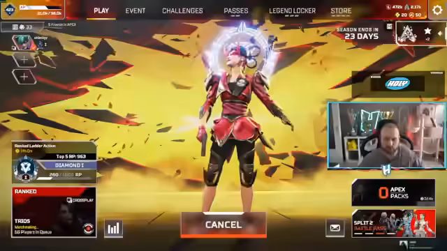 00:01:15Der Streamer begrüßt das Zuschauerpublikum und kündigt an, ein Upgrade für seinen Kanal durchführen zu wollen. Er erwähnt, dass Apex Legends sein Hauptspiel ist und er eine Runde in der Solo-Diamond-Ranked-Modus spielen möchte, um Punkte für den Nyfter-Battle Pass zu sammeln. Gleichzeitig beklagt er die langen Wartezeiten im Matchmaking und äußert die Befürchtung, in schwierige Lobbies mit hochrangigen Spielern zu geraten.