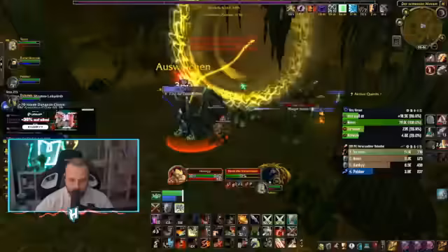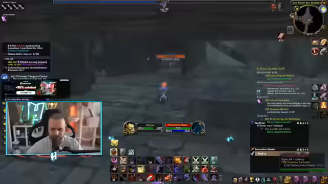 08:44:41Nach mehreren Missverständnissen und suboptimaler Gruppendynamik startet die Gruppe erfolgreich einen neuen Dungeon. Der Streamer kommentiert lauter, dass der Dungeon-Prozess eher langsam verläuft, aber man durchhält und den Gegnern wie den Seriösen Spitzern und den OE-Mobs effektiv begegnet. Dennoch werden häufige Fehler, wie z.B. falsches Targeting oder unachtsame Züge, von der Gruppe gemacht, was zu unnötigen Toden und Ärger führt, insbesondere bei einem Parla-Tank, der sich oft beschwert.