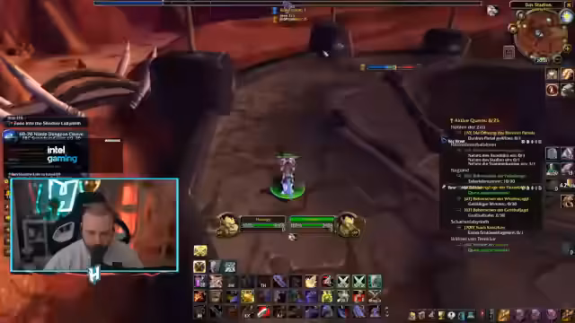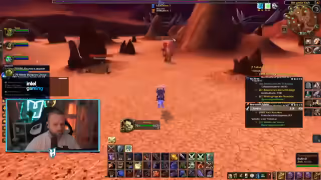 09:52:00Nachdem der Dungeon beendet ist, wechselt der Streamer zum Questing und Farming, um die letzten verbleibenden Prozent für den Level-Up auf 70 zu erreichen. Er durchquärt verschiedene Gebiete, wie das Ödland von Black Morass, und stellt fest, dass der Grinding-Prozess anstrengend und langsam ist. Die Motivation ist trotz allem vorhanden, da das Ziel, Level 70 zu erreichen, klar im Fokus steht.