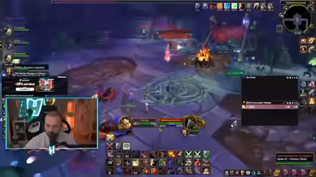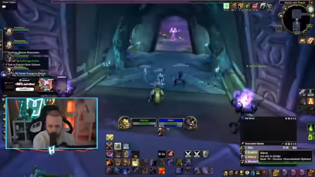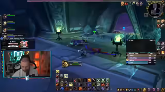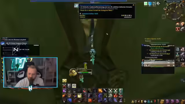 01:34:22Die Gruppe startet den Dungeon 'Schattenlabyrinth'. Es gibt anfängliche Koordinationsprobleme, insbesondere bei der Verteilung der Aggro auf die Mobs, was zu schwierigen Situationen führt. Der Streamer, der als Tank fungiert, hat Schwierigkeiten, die Aggro auf alle Gegner zu halten, insbesondere da ein Hexer sehr hohen Schaden verursacht. Trotz der anfänglichen Herausforderungen gelingt es der Gruppe, die Gegner zu bezwingen und Loot zu sichern.
