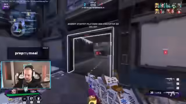01:57:19Der Streamer und sein Team spielen nun ein ernstes Ranked-Match. Sie kommunizieren aktiv über Gegnerpositionen, z.B. 'Sniper-Hit von ihnen' und 'Zona ist Backside'. Sie nutzen taktische Elemente wie Rauchgranaten und den Hund, der als Recon-Drohne fungiert und Gegner aufdeckt. Trotzdem laufen sie in Fallen und verlieren einige Runden knapp. Sie diskutieren über ihr Vorgehen und überlegen, zu fake-rotieren, um das Gegner-Team zu täuschen und in eine Falle zu locken.
