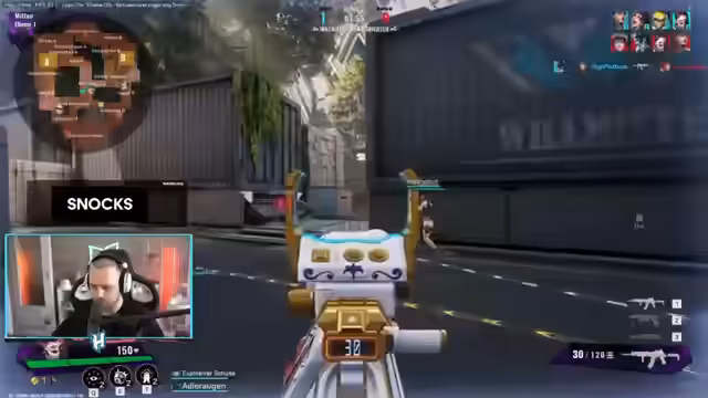 00:14:43Nach einer kurzen Pause stellt der Streamer das Spiel 'Snocks' vor. Er beschreibt es als eine Mischung aus Valorant, aber schneller und bunter. Das Spiel ist Free-to-Play und hat ein 5-gegen-5-Format. Einzigartiges Feature sind Karten, die vor jeder Runde das Spielgeschehen verändern, wie zum Beispiel Schneewetter, das Sliding ermöglicht, oder increased Lebenspunkte. Er erläutert das Overtime-System, das in 1-gegen-1-Duellen besteht, was er als sehr spannend empfindet.