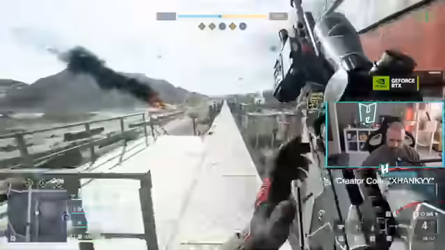 03:34:16Nachdem der Helikopter durch feindlichen Beschuss abgestürzt ist, wechselt der Streamer die Strategie und versucht, einen Jet zu beschaffen. Er beschwert sich über gegnerische Spieler, die ihren eigenen Heli abschießen, damit er neu gespawnt wird. Diesen als geisteskrank empfundenen Akt bezeichnet er als Opfer. Um vorbereitet zu sein, zeigt er auf seinem YouTube-Kanals bereits Flug- und Settings-Geheimnisse für optimale Leistung.