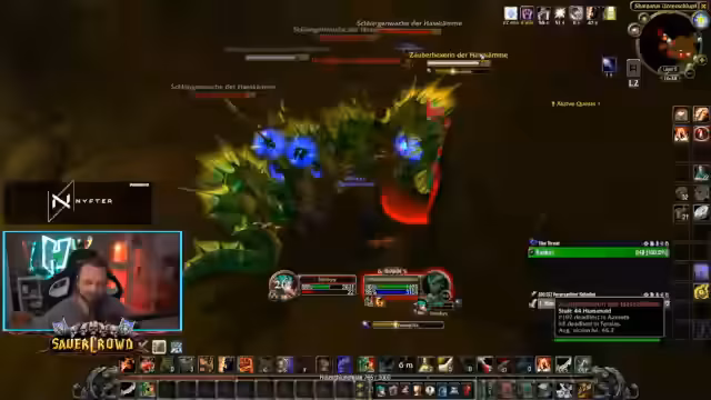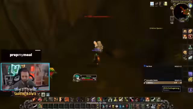 05:55:52Aufgrund von Resistenzen der Mobs muss die Taktik angepasst werden. Der Streamer erkennt, dass ein Simultanangriff mehr Mana erfordert, was zu häufigeren Trinkpausen zwingt. Er überlegt, ob er mehr Heil-Gear oder Tank-Ausrüstung verwenden sollte, um die Widerstandsfähigkeit zu erhöhen. Ein problematisches Thema ist der volle Inventarplatz, der durch gefundene Items wie Wuschelfleisch verursacht wird. Dieses behält der Streamer, da es für eine Kochquest benötigt wird, was jedoch zu Platzmangel und ineffizienter Item-Verwaltung führt.