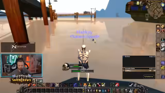 00:04:36Der Stream startet mit einer lockeren Begrüßung. Das Hauptziel ist das Erreichen von Level 60 für einen Krieger, weshalb derzeit Angel-Aktionen durchgeführt werden. Dabei wird geangelt, um Skillpunkte zu sammeln und Rohstoffe zu farmen, die für verschiedene Handwerksberufe wie Alchemie und Kochen benötigt werden. Die Diskussion drehte sich um die notwendigen Angelköder, die Fischsorten, die für verschiedene Tränke benötigt werden, und die Herausforderungen des Angelns, wie entkommene Fische.