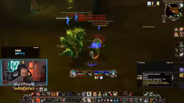 05:51:23Der Stream konzentriert sich intensiv auf das Leveln des Kriegers bei hoher XP-Rate von circa 20.000 bis 24.000 XP pro Stunde. Es wird eine effektive Taktik angewendet, bei der ein Mobby durch Zauber auf 62 Prozent Lebenspunkte reduziert und dann durch einen finalen Schlag ausgeschaltet wird. Der Streamer erwähnt, dass durch Resistenzen der Mobs der Prozess verlangsamt wird und er mehr Heilung benötigt. Um die Bedienung zu verbessern, installiert er ein neues Addon, das die UI mit kleineren, übersichtlicheren Buttons anstatt eines großflächigen Interfaces optimiert und das Tracking von wichtigen Inhalten wie Items ermöglicht.