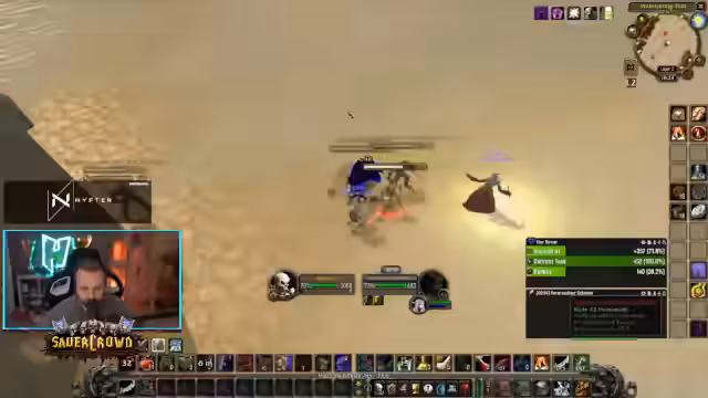 08:45:11Obwohl er PvP seit 2011 spielt, ist sein Peak in der Arena mit 2400 im Solo-Shuffle-Modus nicht konkurrenzfähig genug für den höchsten Competitive-PvP-Bereich. Er kritisiert die Entwicklung des PvP, die er über die Erweiterungen hinweg als Verschlechterung empfindet, besonders im Vergleich zu seiner Jugend, in der er zu jung für eine ernsthafte Beteiligung war. Der Streamer konzentriert sich daher primär auf PvE, da der Kriegerklasse hier eine bessere Rolle zukommt und er mit einem Priester als Heiler gut aufgestellt ist.