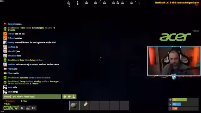 04:46:51Es wird überlegt, wie man am schnellsten zur Absturzstelle gelangt, um die Ausrüstung zurückzuerlangen. Die Gruppe plant, zwei Helikopter zu besorgen und die Raid-Base zu bauen. Es wird diskutiert, wie viel Scrap benötigt wird und wer es besorgen soll. Ein Spieler berichtet von einem Bolt-Headshot und dem Verlust seines Stuffs. Die Gruppe beschliesst, die Raid-Base zu bauen und den verlorenen Stuff später zurückzuholen. Es wird über die aktuelle Lore des Servers diskutiert und die Frage aufgeworfen, ob Strobl noch zum Team gehört. Es stellt sich heraus, dass Strobl nur Angst hatte und sich aus der Verantwortung ziehen wollte. Die Gruppe wird von anderen Spielern angegriffen, während sie versucht, die Raid-Base zu bauen. Es kommt zu einem kurzen Feuergefecht, bei dem ein Angreifer getötet wird.