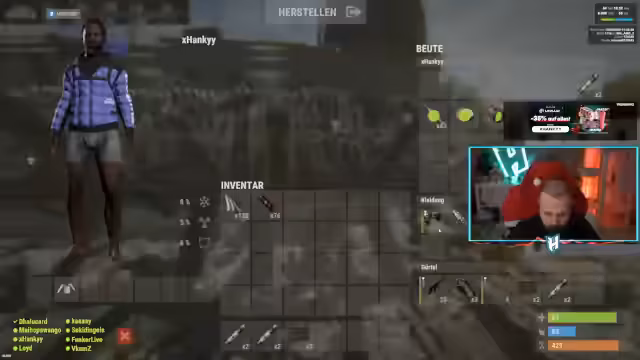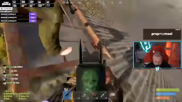06:54:19Sie entdecken einen Solo-Spieler und diskutieren Angriffsstrategien. Camper werden beobachtet, Ziplines genutzt, und Nachtvison eingesetzt. Der Streamer plant Raidable Bases und Abcamping, während sie Gegnerbewegungen analysieren. Diskussionen über FPS-Probleme und technische Einstellungen laufen parallel. Sie überlegen, ob sie eine Base stürmen oder warten sollen, und beobachten, wie Gegner fälschlich Ziplines nutzen.