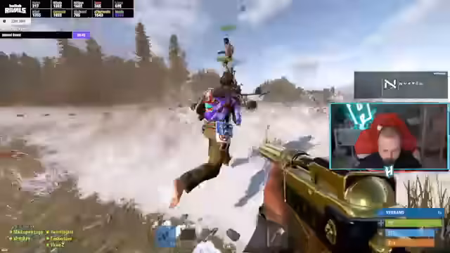 07:19:15Ein Angriff mit Rockets und AKs auf das Willjim-Team beginnt, wobei sie nach Tags suchen. Der Streamer flucht entlang des Cliffs und plant Zipline-Flüchte zu Junen. Heftige Kämpfe entstehen im Aufzug gegen ein Full Team, unterstützt durch Smokes. Nach mehreren Kills und Verlusten endet der Stream. Der Streamer kündigt an, am nächsten Tag um 14 Uhr fortzufahren und verabschiedet sich vom Chat.