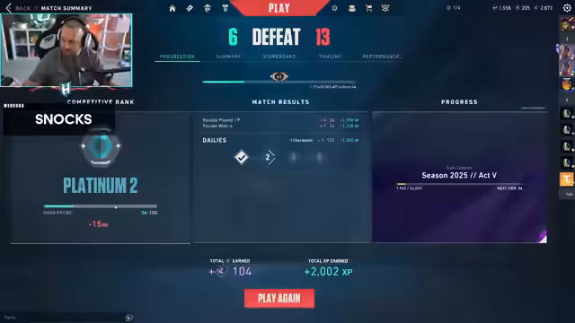 00:10:14Der Streamer spricht über die Velovent-Challenge, bei der er versucht, innerhalb einer Woche den höchsten Rang zu erreichen. Er hat noch vier Tage Zeit und ist gespannt auf das Ergebnis. Zuschauer können Gamevorschläge für die Challenge unter dem YouTube-Video einreichen. Multiplayer-Ego-Shooter sind bevorzugt, da das Format auf dem Erreichen des höchsten Rangs basiert. Der Streamer freut sich über den Champions-Vandal Skin und mag den Classic Vandal Skin nicht. Er erinnert sich an den Classic Crime Skin als sein erstes Bundle in Valorant. Katzen störten ihn um 6 Uhr morgens, was den Alltag unterbricht. Nach einem gewonnenen Deathmatch geht es mit Gewinner-Mindset in Valorant.