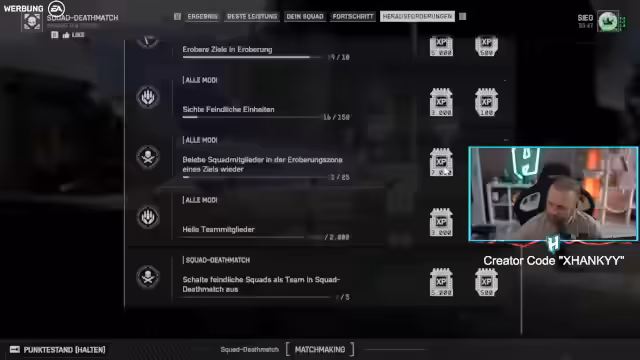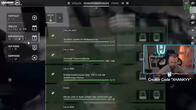 00:04:37Der Stream beginnt mit dem Spieler, der seine Battlefield-Session eröffnet. Er kündigt an, sich zunächst um Challenges für die Pioneer-Klasse zu kümmern, welche einen Fokus auf Spielmodi wie Eroberung, Team Deathmatch und Spielszenen mit sichtefeindlichen Einheiten beinhalten. Der Streamer startet direkt in einem Team Deathmatch, um mit dem Leveln einer SMG zu beginnen und tägliche sowie wöchentliche Herausforderungen zu bewältigen. Dabei erwähnt er auch seine Katzen, die für Unterbrechungen sorgen, und gibt Einblicke in seine aktuelle Spielerausstattung und Map-Erfahrung.