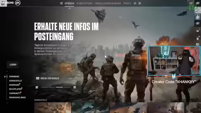 07:14:59Der Streamer teilt einen wichtigen Hinweis mit seiner Community: einen personalisierten Promo-Code 'XHanky', der für den Kauf von Apex Coins, FIFA Coins oder anderen Produkten im EA-Shop verwendet werden kann. Dies wird als eine Möglichkeit für die Zuschauer unterstützt, ihm zu helfen. Er interagiert weiterhin intensiv mit dem Chat, beantwortet Fragen und gibt Updates zu seinen Plänen, wie seiner bevorstehenden Battlefield LAN-Party in Berlin.