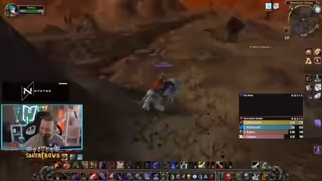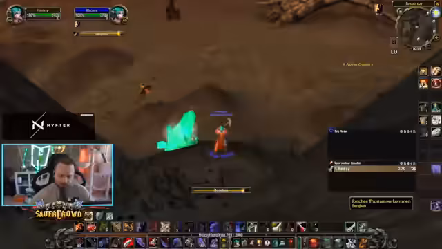 00:01:34Der Stream beginnt mit dem Plan, in der Brändesteppe Berufe zu skillen, insbesondere um mehr Thorium für das Ingenieurswesen zu farmen. Für heute Abend ist um 18:45 Uhr ein Buff-Gruppen angedacht, woraufhin direkt Dungeon-Touren geplant sind. Ein mit Felsensturm ausgerüsteter Level 60 Warrior ist bereits vorhanden und die Gruppe will für den Dungeon-Verlauf sogleich Mob-Gruppen im Dungeon locken.