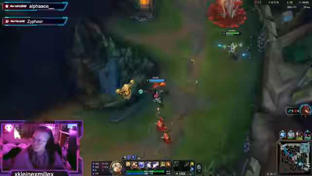 01:59:56Der Stream startet mit intensiven Kampfhandlungen in einem League of Legends Ranked-Game. Der Spieler hat Schwierigkeiten mit dem Champion 'Warwick', dessen Stärke im Early Game kritisiert wird. Das Spiel wird durch massive Lag-Probleme unterbrochen, die den Spieler nicht spielen lassen und zu Frustration führen. Nach einer kurzen Pause stabilisiert sich die Verbindung wieder, das Spiel ist jedoch bereits vergeben.