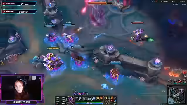 04:02:33Der Stream beginnt mit intensiven taktischen Auseinandersetzungen im Spiel. Es geht darum, schnell zu 'engagen' und Gegner zu eliminieren. Der Fokus liegt auf präzisen Aktionen, der Nutzung von Fähigkeiten wie Flash und die Koordination des Teams. Die Spieler analysieren gegnerische Ziele wie Lux und Rumble, diskutieren über Spielzüge und planen Überraschungsangriffe. Oftmals werden Fehler gemacht und im Nachhinein analysiert, was zu spannenden und dynamischen Spielmomenten führt.