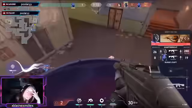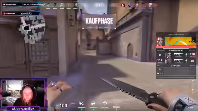 00:21:07Nach den ersten Valorant-Runden unterbricht das Gameplay für einen kurzen Moment, als Leo nicht auf Discord zu finden ist. Der Streamer begrüßt ihn dann im richtigen Channel. Anschließend wird über das neue Donut-Design gesprochen. Als das Spiel weitergeht, gibt es weitere Unstimmigkeiten bei der Map und der Taktik. Die Kommunikation ist schlecht, und die Streamerin muss sich immer wieder über fehlende Reaktionen oder falsche Aktionen des Teams beschweren. Sie äußert auch ihren Frust über ihre eigene Leistung.