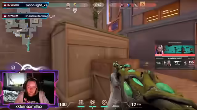 02:12:56Zurück im Spiel ist die Atmosphäre angespannt. Der Streamer fordert die Gegner auf, 'kaputt zu machen, was einen kaputt macht'. Er versucht, eine Runde zu holen, während ein Gegner 'eingefroren' zu sein scheint. Die Suche nach effektiven Waffen beginnt; die Guardian wird als problematisch empfunden, während Neon kritisiert wird, weil sie hässlich sei. Es kommt zu taktischen Fehlern und Diskussionen über die Effektivität der Waffen.