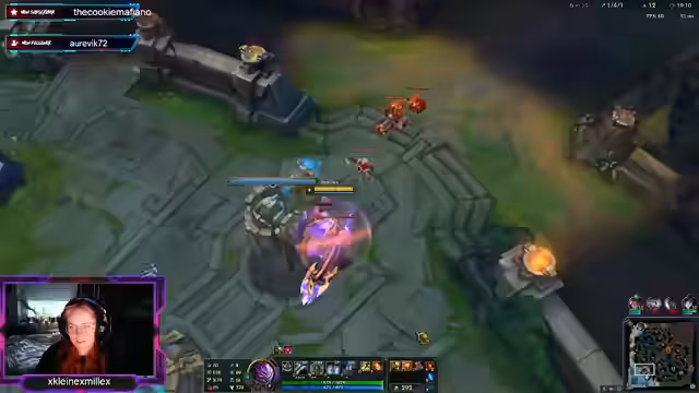 00:08:37Der Fokus wechselt zu League of Legends. Die Streamerin beschreibt ein Team-Spiel bei 'Team X', das durch das laute Telefonieren eines Mitspielers gestört war. Sie erwähnt, dass sie in ihrem eSports-Team die Rolle von 'Toplane' zu 'Jungle' gewechselt hat. Sie äußert ihre Vorliebe für Jungle und spricht über verschiedene Champions, darunter Vayne und Nautilus, und äußert Frustration über die Kombinationsfähigkeit der Gegner in der 'Bot-Lane'.