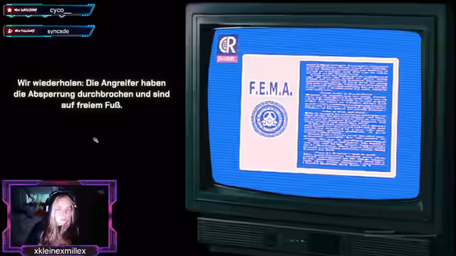 01:58:34Die Nachrichten berichten über eine ernste Krise: Die FEMA hat Regierungsbeamten verhaftet, da sie sich als Besucher entpuppt haben. Da das Parlament handlungsunfähig ist, übernimmt die FEMA die Kontrolle als Übergangsregierung. Gleichzeitig brechen Angreifer in die Quarantänezone ein, was die Lage weiter verschärft. Der Streamer beobachtet, wie das Chaos zunimmt und fühlt sich zunehmend überfordert, da auch er nicht weiß, wem er noch trauen kann.