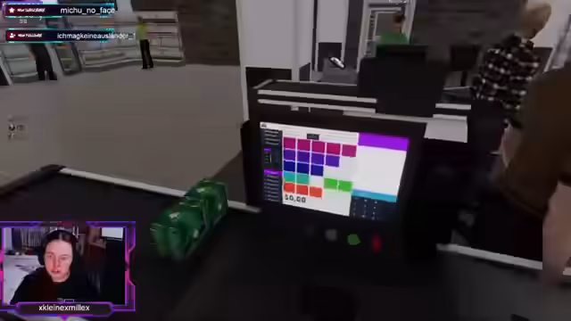 00:31:33Im Spiel stellt das Team fest, dass die Kassentätigkeit anstrengend ist und sie mit Problemen wie Diebstahl und unscharfen Preisen zu kämpfen haben. Der Fokus liegt darauf, den Laden profitabel zu gestalten, Regale zu füllen und auf verdächtige Kunden aufzupassen. Die Streamerin interagiert humorvoll mit den anderen Spielern, die oft als verdächtig oder unkonventionell beschrieben werden, während das Team versucht, seine Einnahmen zu maximieren.
