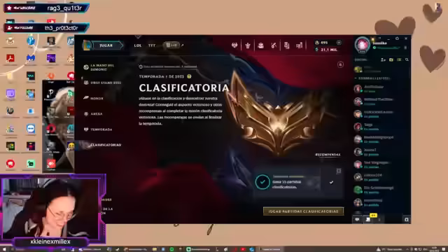 Nach einem intensiven League of Legends-Spiel, das eine Gewinnserie zur Folge hatte, steht für die Gamerin die bevorstehende Klausurenzeit im Vordergrund. Sie berichtet über die schulische Belastung, insbesondere im Fach Spanisch, und plant ihre Zeit für Lernen und Freizeit ein. Für das Wochenende wird ein gemeinsames Spiel mit der Community angekündigt.