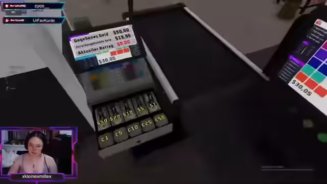03:29:58Die Kassenabwicklung stößt auf Probleme, wie das nicht korrekte Wechselgeld zurückgeben und die unübersichtliche Preisgestaltung. Es werden Produkte wie Olivenöl, Sodas und Mozzarella erwähnt, die schnell ausverkauft sind. Der Bestellprozess für neue Waren wird angesprochen. Die Streamerin kauft Fruchtjoghurt und Tea, während sie darauf hinweist, dass einer der Mitarbeiter vor Ort schmiere stehen muss.
