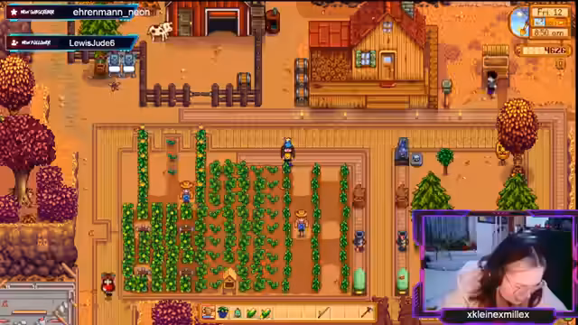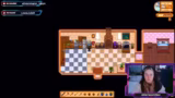 00:30:32Die Streamerin interagiert mit NPCs wie Marnie und Abigail, die sie für faul hält. Sie plant, mit ihrem Team ein Fischfest zu gewinnen, und erhält von Sunny einen Lachs geschenkt. Währenddessen muss sie auf ihre Kühe aufpassen und verliert versehentlich eine Kuh, weil sie sich nicht um sie gekümmert hat. Es kommt zu Streitigkeiten über die Koordination der Teammitglieder.