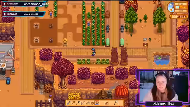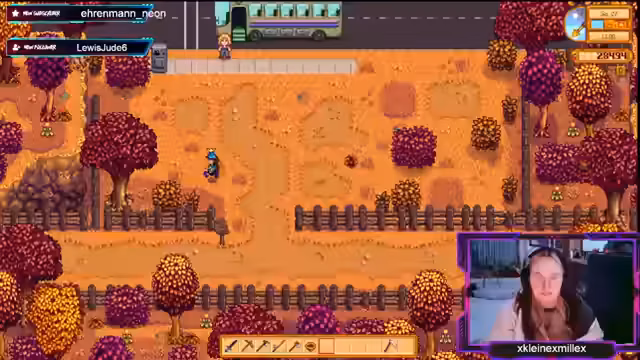 03:47:37Der Stream zeigt die täglichen Routinen der Spieler. Dazu gehört das Füllen von Schüsseln, das Handeln von Gegenständen und das Verwalten von Inventar. Ein Versuch, eine Kürbiskultur zu retten, und die Notwendigkeit, Heu anzupflanzen, werden thematisiert. Auch die Besuche bei Dorfbewohnern wie Marnie für den Verkauf besonderer Gegenstände sind Teil des Ablaufs. Die Jagd nach einem seltenen Regenbogenschleim und die Belohnung dafür zeigen die Fortschritte und das Engagement der Spieler.