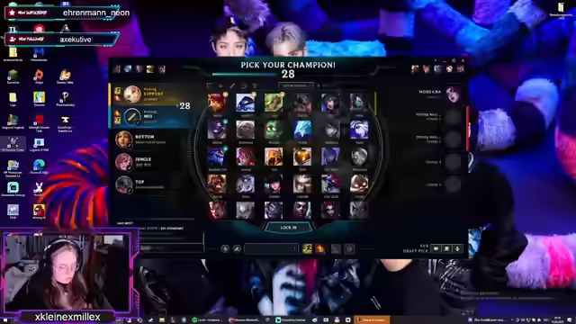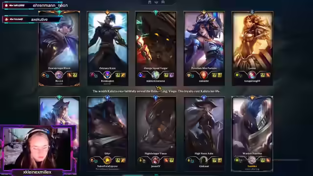 xkleinexmillex startet mit Valorant, experimentiert mit Waffen und diskutiert Spielstrategien. Nach dem Wechsel zu League of Legends werden Skins ausprobiert, Team-Diskussionen geführt und Essenspläne geschmiedet. Müdigkeit und eine unbefriedigende Arbeitssituation beeinflussen die Gaming-Session, die mit Verabschiedung und Ankündigung eines Neustarts endet.