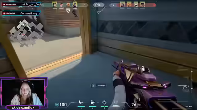 01:24:24Es wird über den Kauf eines pinken Phantom-Skins gesprochen, sobald dieser verfügbar ist, da die Streamerin diesen erst mit Level 25 erhält. Zudem wird die Möglichkeit erwähnt, durch das Spielen als Kameramann mehr Punkte zu erhalten. Die aktuelle Map wird als passend für die Schule empfunden, da die Gruppe als Verteidiger agiert. Es wird die Schwierigkeit ausgedrückt, die eigenen Aussagen zu formulieren. Des Weiteren wird die Teamarbeit gelobt, insbesondere die Ablenkung eines Gegners, die zum eigenen Vorteil genutzt wurde. Abschließend wird die Vorliebe für bestimmte Spielteile geäußert und die aktuelle Runde als möglicherweise letzte bezeichnet.
